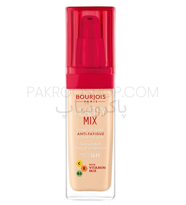 کرم پودر هلثی میکس از برند فرانسوی Bourjois، محصولی چندمنظوره در دسته بندی کرم پودر است که با فرمولاسیونی غنی از ویتامین های C، E و B5، جلوه ای طبیعی و بی نقص به پوست می بخشد. این کرم پودر با بافتی سبک و غیر کومدون زا، برای انواع پوست به ویژه پوست های خشک و حساس طراحی شده و با خاصیت ضدخستگی، پوست را شاداب و سرزنده نشان می دهد.